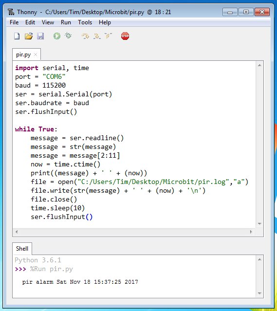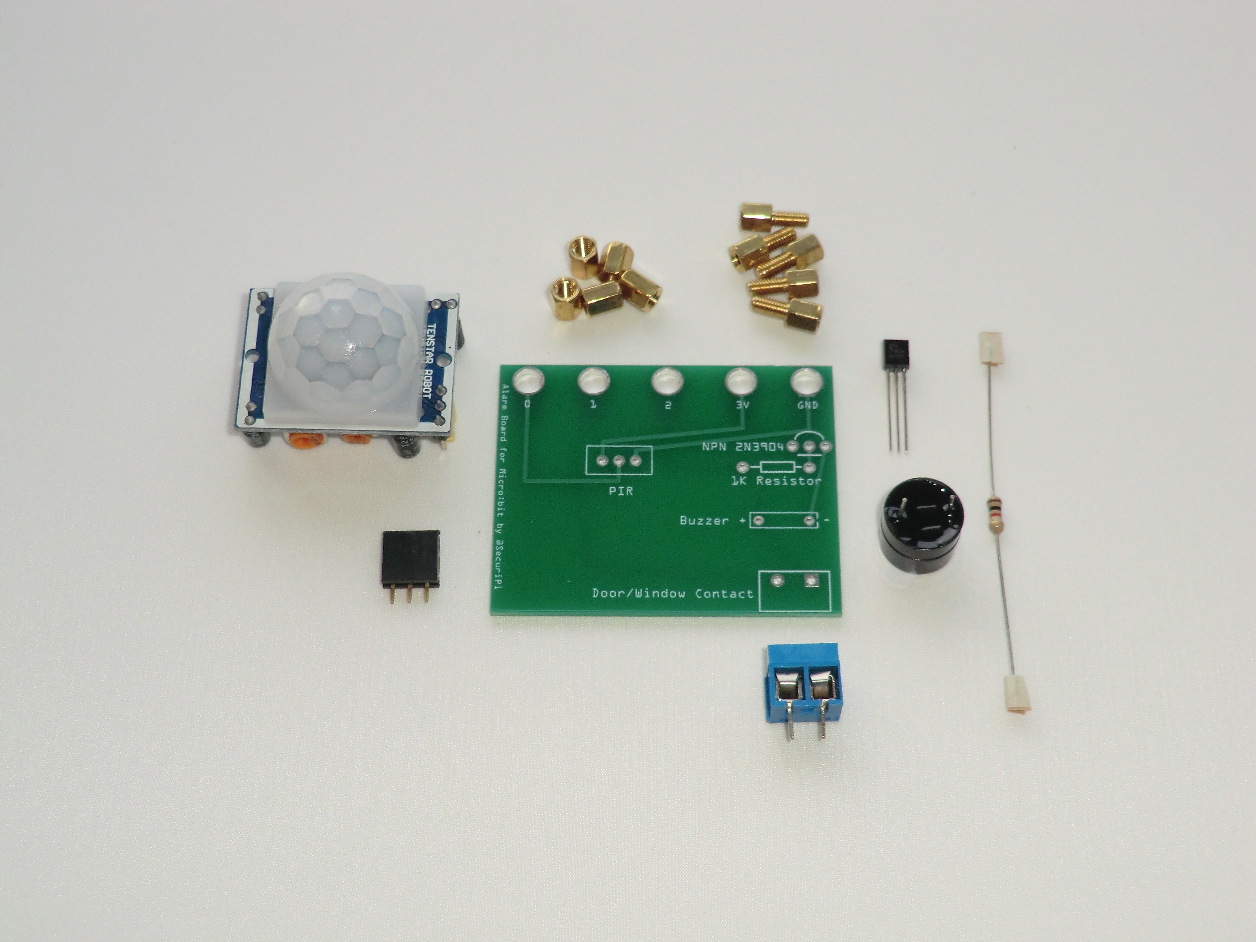 alarmbit.pdf – Manual for our Alarmbit board for BBC Microbit. Attach a PIR and magnetic door sensor to your BBC Microbit, and sound the onboard buzzer when alarm is triggered. Also includes guide for attaching Microbit to PC (using Thonny/Python) and sending alerts via email to your mobile phone. Also includes instructions for making a wireloop game using the Alarmbit board. Buy an Alarmbit board kit with PIR and magnetic door sensors at Amazon UK for £13.99 or Amazon US for $17.95. The Alarmbit PCB design files for Fritzing are here – useful if you want to make your own Microbit breakout PCBs.